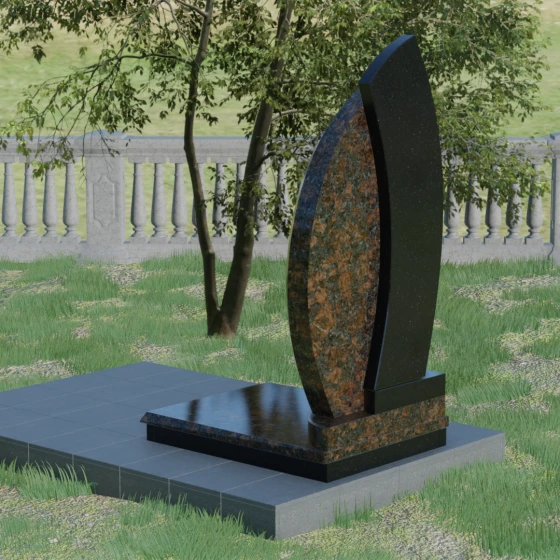 Кому подойдет: Данная модель является универсальным и в то же время глубоко индивидуальным решением. Благодаря мягким изгибам центральной части, она идеально подходит для оформления женских захоронений, воплощая нежность и материнскую любовь. В то же время строгая внешняя рама и возможность исполнения в темных, маскулинных тонах (например, в черном Габбро или зеленом граните Балтик грин) делают этот гранитный монумент достойным выбором для мужчины — отца, мужа или брата. Это памятник для тех, кто ценит современный стиль, надежность и хочет выделить место памяти среди типовых решений за счет уникальной формы и премиального сочетания материалов.