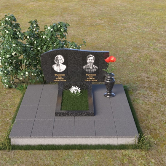Оформление: Для этой формы стелы рекомендуется выбирать портреты с четкими контурами, чтобы гравировка максимально точно передала образ усопшего. Имена и даты рождения можно разместить под портретами, используя элегантный шрифт с золотым напылением, что придаст ритуальному изделию дополнительную торжественность.