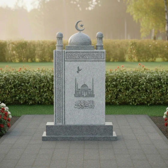 Каждая деталь этой модели наполнена глубоким смыслом. Форма купола символизирует небесный свод и защиту, которую обретает ушедший под сенью Всевышнего. Минареты, устремленные ввысь, олицетворяют духовную вертикаль и постоянную связь между земным и вечным. Декоративное мощение участка крупной каменной плиткой серого оттенка создает ощущение чистоты и завершенности, исключая прорастание сорной травы и подчеркивая статусность захоронения. Ступенчатое основание (цоколь) обеспечивает конструкции исключительную устойчивость, приподнимая святыню над землей, что символизирует возвышение духа над тленом.