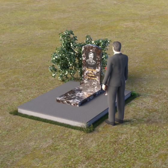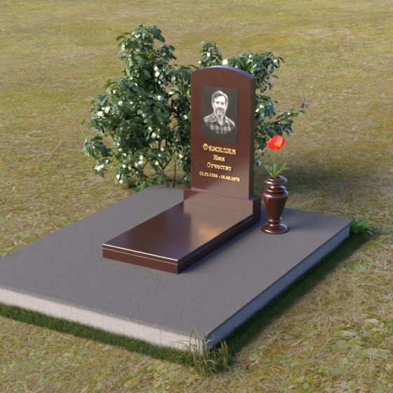 Благодаря своей лаконичной форме, эта стела предоставляет широкие возможности для оформления. Портрет усопшего будет гармонично смотреться как в верхней части стелы, так и чуть ниже центра. Золотое тиснение имени и дат жизни будет элегантно выделяться на фоне полированного камня, создавая четкий и легко читаемый образ. Небольшая тумба, расположенная перед стелой, может служить местом для возложения цветов и памятных вещей. Мы рекомендуем выбирать для этой модели сдержанные, лаконичные шрифты, которые подчеркнут общую элегантность композиции. Подумайте о возможности добавления небольшого бронзового барельефа или скульптуры, отражающей профессию или увлечения ушедшего человека. Это добавит индивидуальности и сделает место памяти еще более личным и значимым. Ваза, выполненная в едином стиле с монументом, завершит композицию и придаст ей законченный вид.